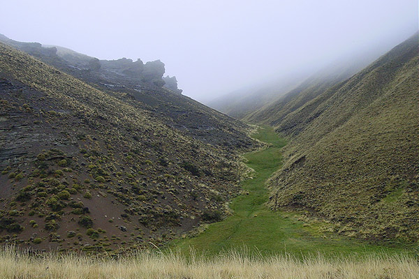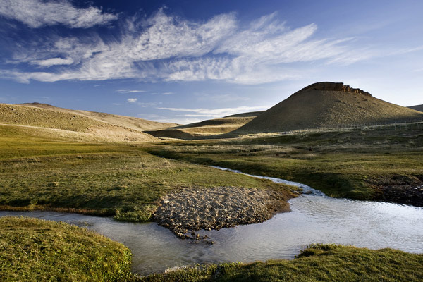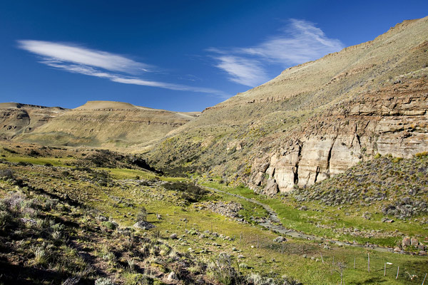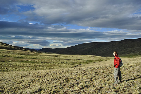 Enseguida se continúa la huella hacia el sur y el grupo se acerca al límite con Chile, alcanzando el mirador del Centinela: un cerro a 1500 msnm desde donde se obtiene una impactante vista panorámica de interminables paredes de basalto, del Cerro Centinela y de los Baguales (cerros que marcan el límite sur con Chile). Aquí se realiza la quinta parada, y llega el momento de distensión, para sentir el viento y la inmensidad patagónicos.
