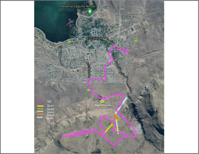 Desde El Calafate, en tan solo minutos, comenzaremos el ascenso al cordón Huyliche, el recorrido comienza transitando por las laderas del Cañadón del Arroyo Calafate, desde donde podremos avistar la fauna autóctona: guanacos, zorros, liebres, loicas, bandurrias, caranchos y halcones entre otras especies.