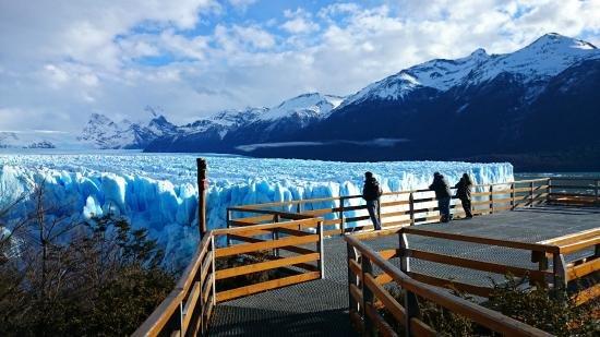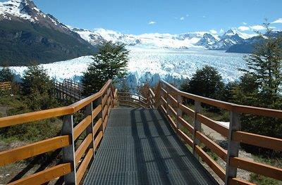 Las pasarelas tienen una extensión de 5 km y están constituidas por escalinatas que descienden hasta aproximarse a unos 300 metros del frente del glaciar. A 146 metros del acceso a las mismas se encuentra el Balcón Principal, desde donde se aprecia una impactante vista de las paredes norte y sur además de la zona de endicamiento del glaciar. Desde cada uno de los balcones restantes distribuidos a lo largo de las escalinatas puede apreciarse la majestuosidad de este gigante de hielo.