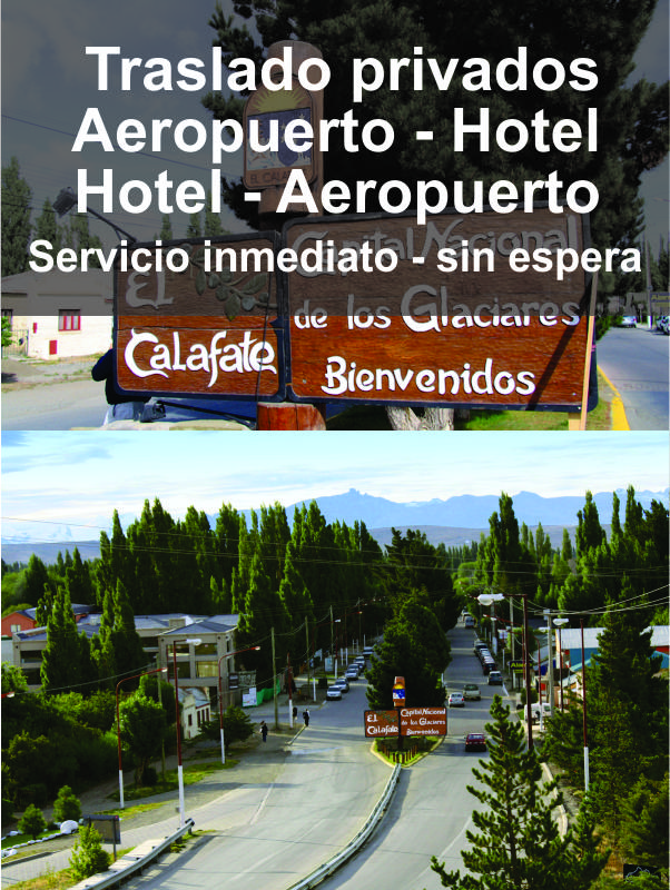 Lo estaremos esperando en el aeropuerto con un cartel con sus nombres y apellidos para que pueda ubicar rápidamente a nuestro personal; será guiado hasta el vehículo junto con el equipaje y luego de aproximadamente 25 minutos estará llegando a la ciudad de Calafate, finalizando el servicio en el alojamiento que usted haya reservado y que informa en la reserva.